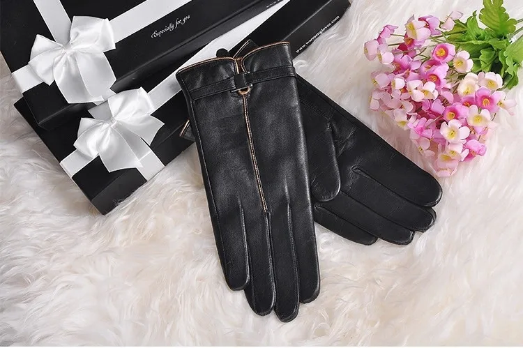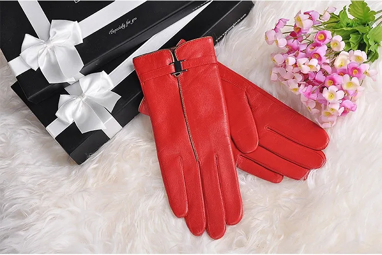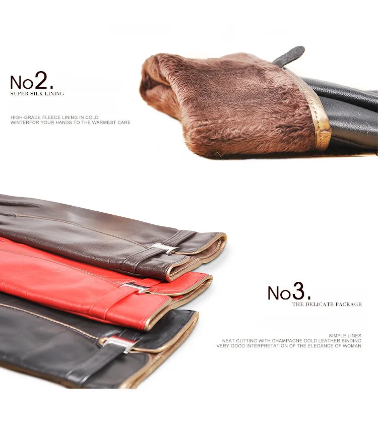 Женские короткие кожаные перчатки с бархатной подкладкой, модные перчатки из натуральной овечьей кожи, теплые зимние перчатки, бесплатная доставка, L050pc
