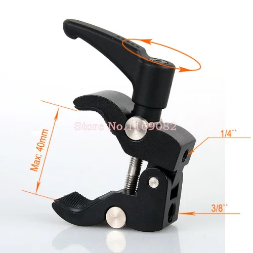 Особенности: 1. Может использоваться с держателем2. Установка видео светильник, мониторы и другие аксессуары3. Минимальный диаметр отверстия: 0,39 дюйма/1 см4. Максимальный диаметр отверстия: 1,97 дюймов/5 см5. Цвет: черный + серебристый6. Материал: металл7. Вес: 4,97 унций/141 г8. Размеры: 2,24x3,15x0,79 дюймов/5,7x8x2 см (в том случае, если зажим Закрытый Д х Ш х В)9. Посылка Размер: 3,50x2,52x1,14 дюймов/8,9x6,4x2,9 см Размер упаковки (Д х Ш х В): 2 в 1 только 2 шт. в комплекте: 1x7 дюймов волшебная рука1 х черный супер зажим