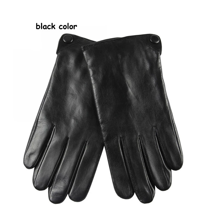 Модные мужские кожаные перчатки, теплые однотонные черные наручные перчатки из натуральной овчины, Зимние перчатки для вождения, ограниченное время, бесплатная доставка