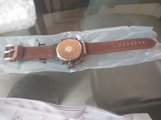 Посылка пришла быстро. "Кожаный" ремешок грубоват - пожалел, что не заказал часы с "текстильным"ремешком.