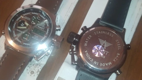 часы очень сильно отличаются от картинки и оригинала, это уже вторые часы AMST первые оригинал, подсветка не зеленая ближе к синему, ремешок среднего качества, насчет водонепроницаемости так вот это не про них нет ни одной резинки!