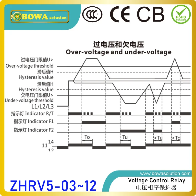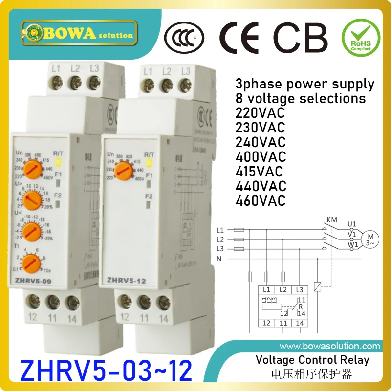 Универсальное реле контроля напряжения ZHRV5 с 8 выбираемыми напряжениями, соответствует различным системам питания ручными настройками