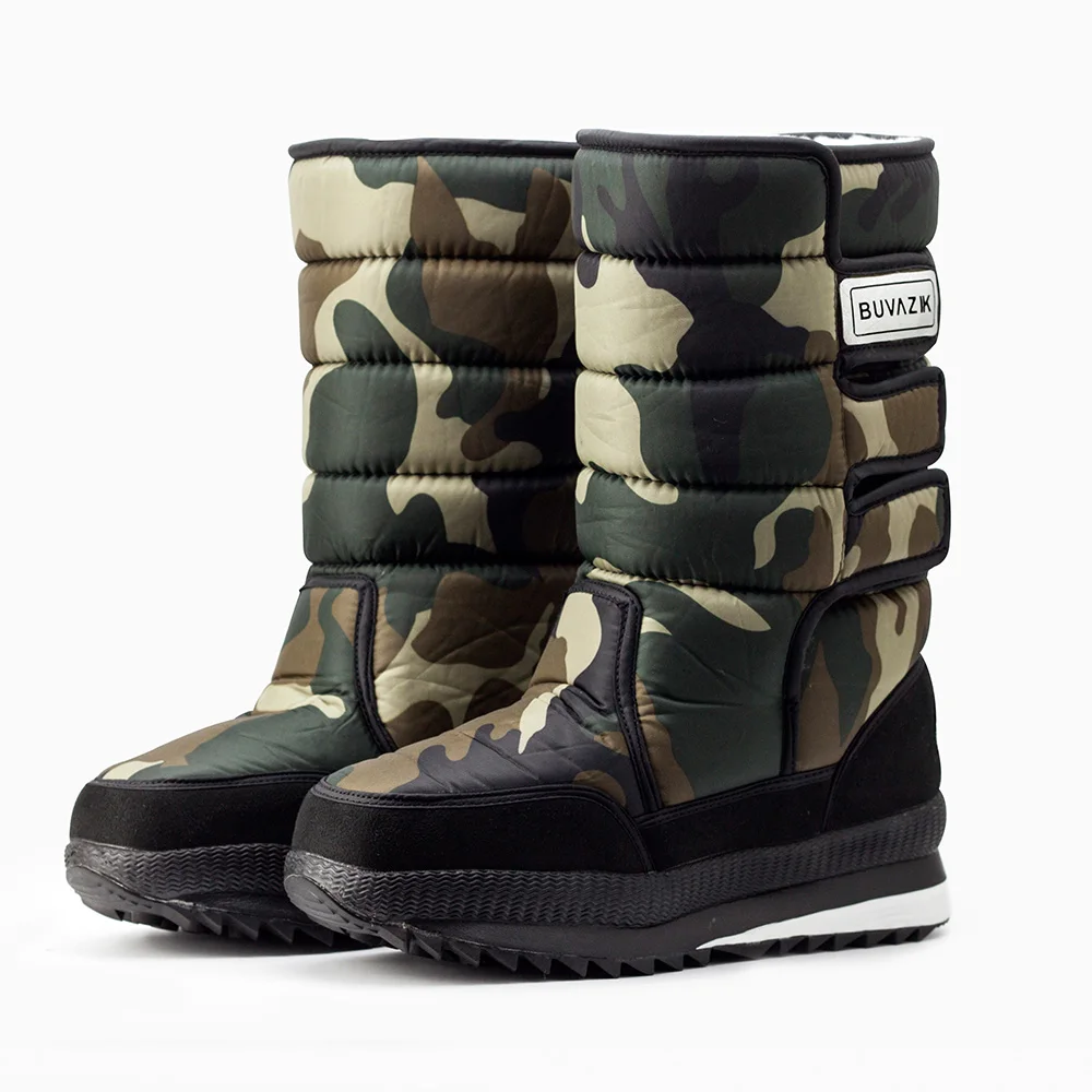 Мужские теплые сапоги до колена BUVAZIK, коричневые уличные сапоги на толстой водонепроницаемой платформе, в стиле милитари, для охоты, зима 2019