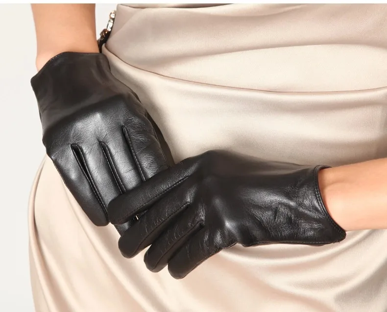 Женские перчатки Топ; Модный комплект из двух штук наручные натуральная кожа + трикотажные нарукавники, Термальность зимние вождения L137NN