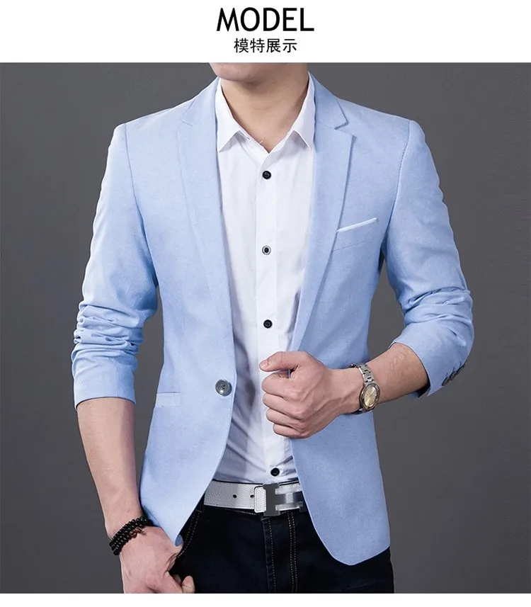 Пиджак мужской повседневный, приталенный Блейзер, небесно-голубой, черный, размера плюс 5XL, весна 2021