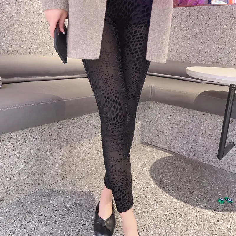 Женские леггинсы из искусственного меха, Шелковые штаны с вырезами, на весну и осень