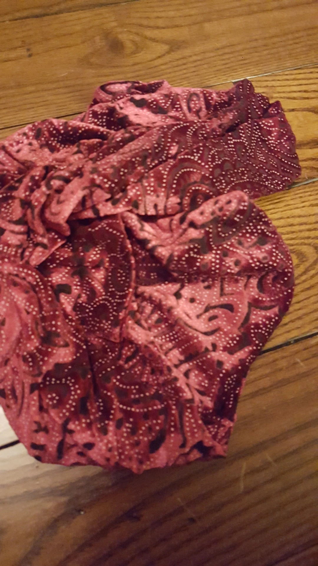 Цвет не соответствует заявленному бордовому - из-за сильного блеска, больше похож на сиреневый. На заявленной фотографии вставка между узором прозрачная, в реальности - она черного цвета, что создает эффект "сиреневого леопарда". Размер подошел, ношу 42. Продавец отправил товар быстро.