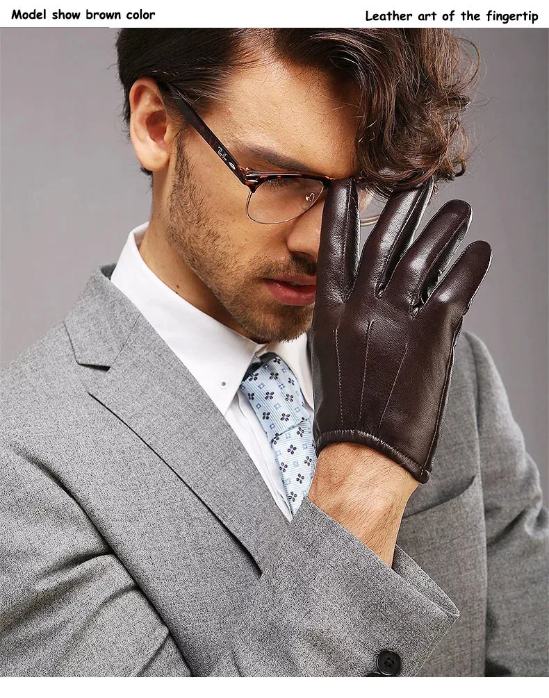 Модные мужские перчатки из натуральной кожи, наручные перчатки из овечьей кожи для мужчин, тонкие Зимние перчатки для вождения с пятью пальцами, бесплатная доставка