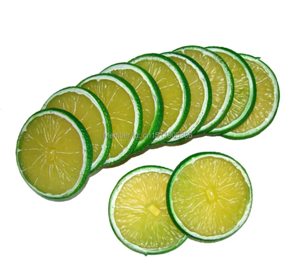 10 шт. реалистичный зеленый поддельный Лимон Лайм ломтик гарнир искусственный фрукт искусственная Еда Декор Бесплатная доставка 8 см