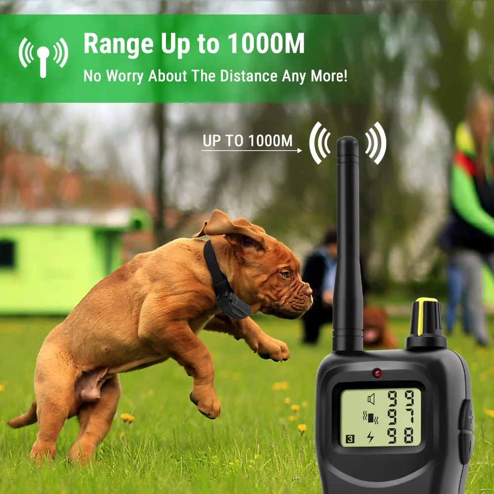 Ошейник Petrainer PET900-это система с диапазоном 1000 ярдов, работающая от сменных батарей. Идеальный тренировочный ошейник для собаки для начинающего пользователя, который нуждается в надежной системе дальнего действия, чтобы контролировать свою беспорядочную собаку. Он содержит множество режимов, которые: шок, вибрация и звуковой сигнал. Каждый режим имеет 0-99 уровней интенсивности на выбор, чтобы убедиться, что владелец собаки находит правильный уровень для своего питомца.