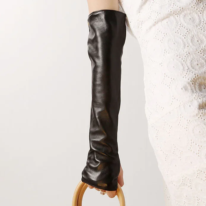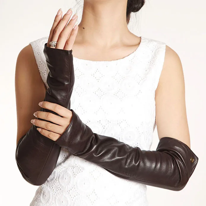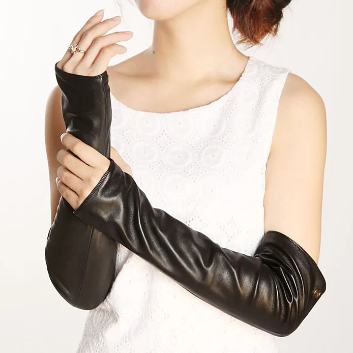 Модные 41 см длинные женские перчатки из натуральной кожи оперные женские перчатки без пальцев 2020 новые банкетные однотонные перчатки из овчины Бесплатная доставка
