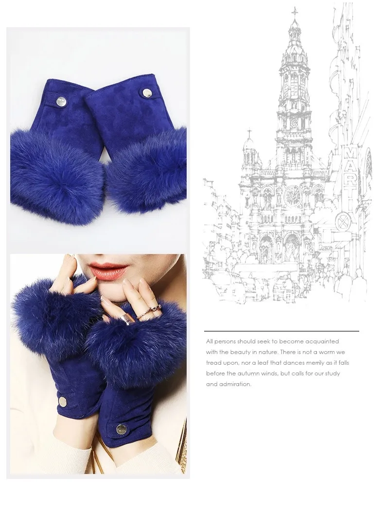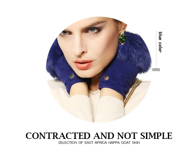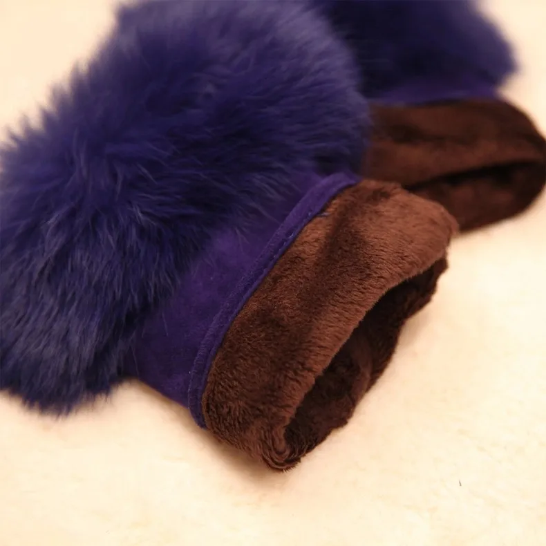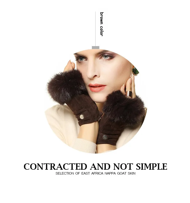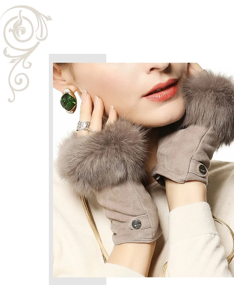 Модные зимние замшевые перчатки без пальцев с кроличьим мехом из свиной кожи, однотонные женские перчатки из натуральной кожи на запястье для вождения EL019NC