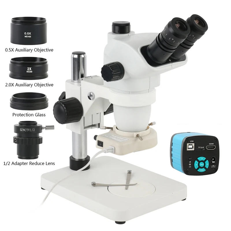 Тринокулярный стереомикроскоп 3.35X-90X, Simul-Focal, 48 МП, 4K, HDMI, USB, видеокамера, линза Барлоу для исследований, Электронная проверка