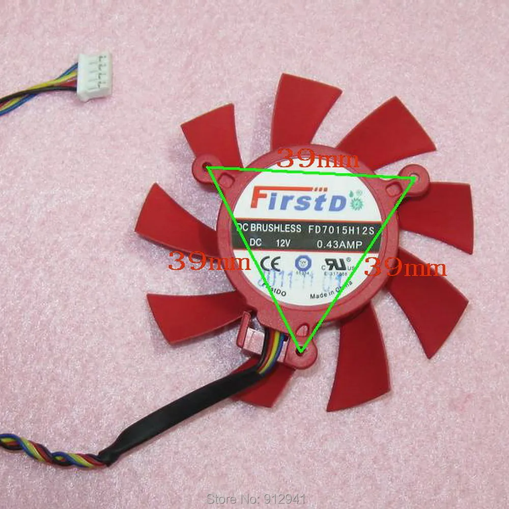 Вентилятор для охлаждения видеокарты R100b Firstdo FD7015H12S, 65 мм, 39 мм, 12 В, 0,43 А, 4-проводной 4-контактный разъем