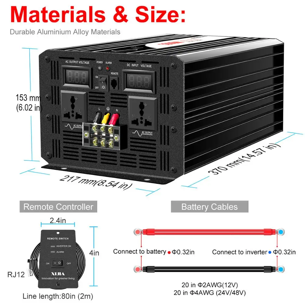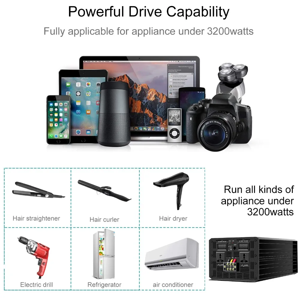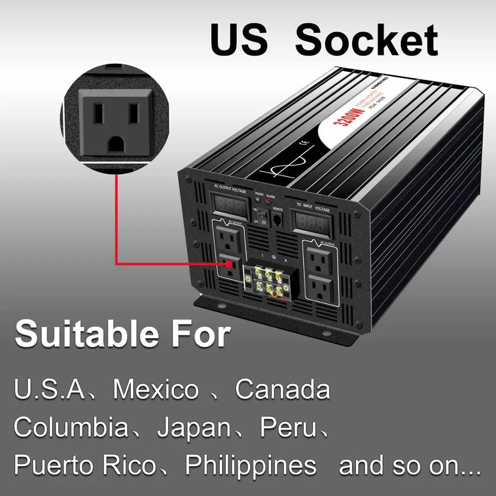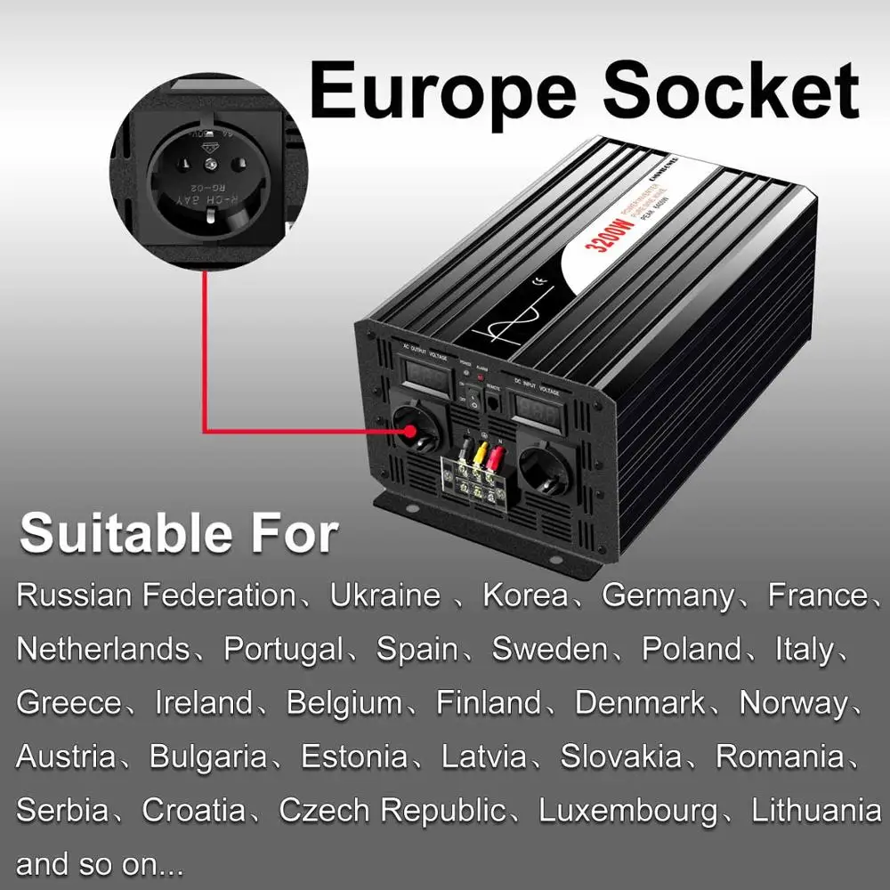 Инвертор солнечной энергии 3200 Вт, 3000 Вт, чистый синусоидальный сигнал, постоянный ток 12 В, 24 В, 48 В в переменный ток 110 В, 220 В, цифровой дисплей