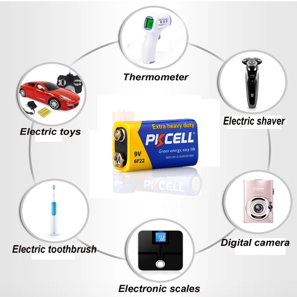 16 шт. PKCELL 9 В 6F22 для электронного термометра, первичная батарея 6LR61, сверхмощная батарея, одноразовые батареи
