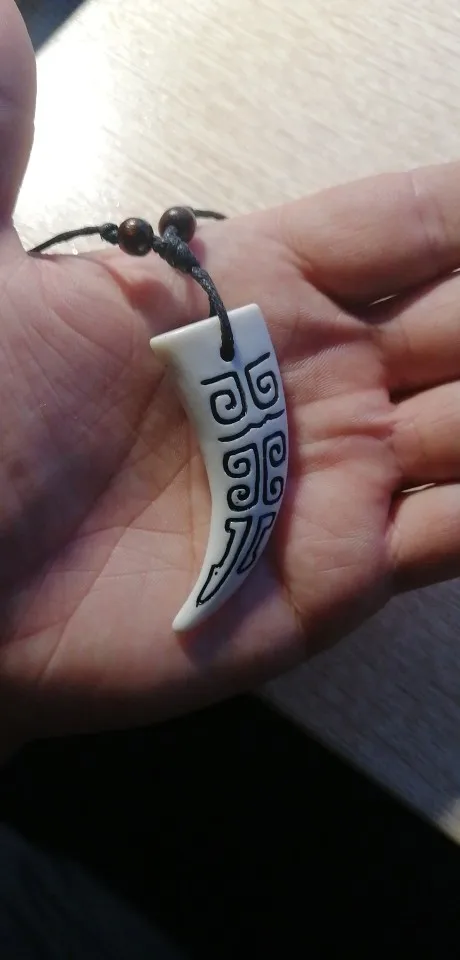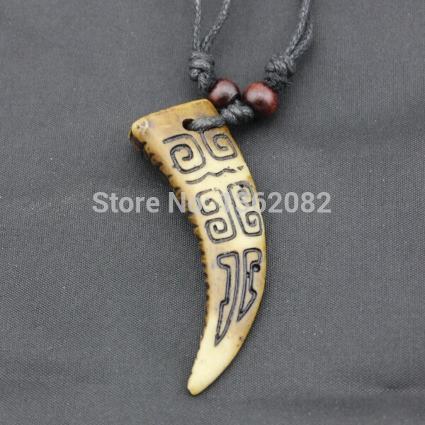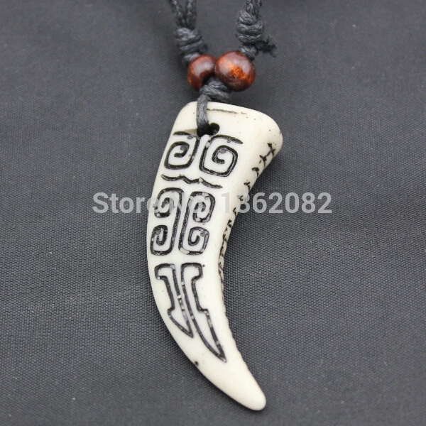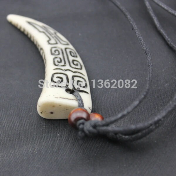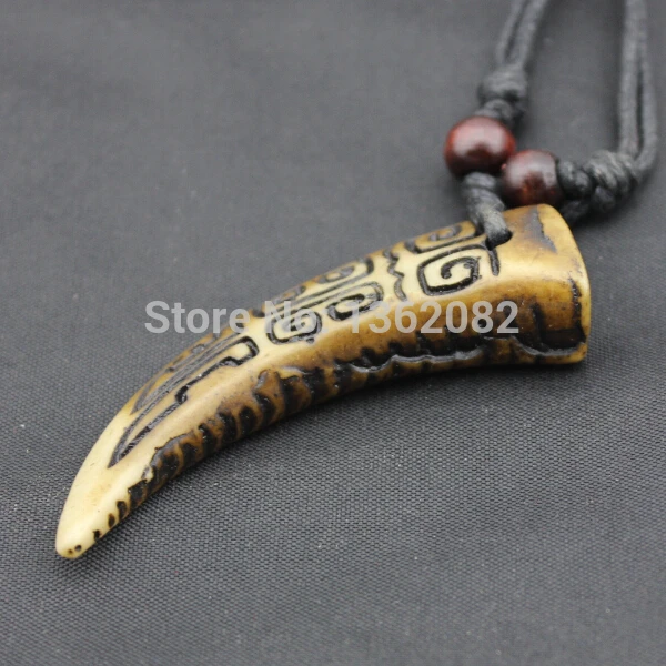 Крутой мужской кулон для мальчика имитация кости яка резной кулон зуб волка Ожерелье Амулет Регулируемый зуб веревка подарок MN164