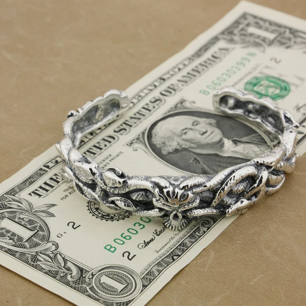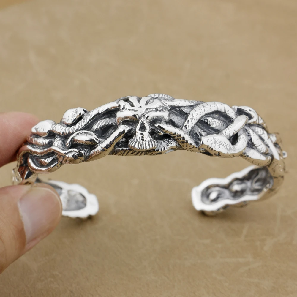 _ Серебряные змеи на черепе, мужской Байкерский браслет 9B009 в стиле рок, подходит для запястья 6,0 7,5 дюймов