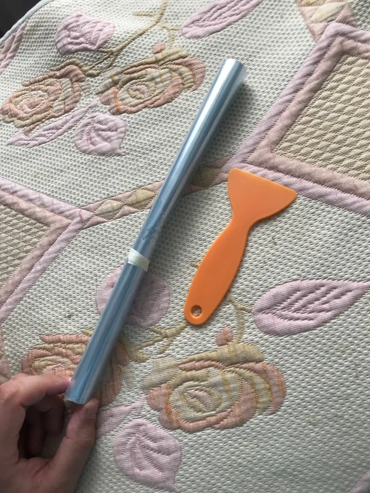 Плотный и аккуратный рулончик плёнки плюс скребок-лопатка для разглаживания.