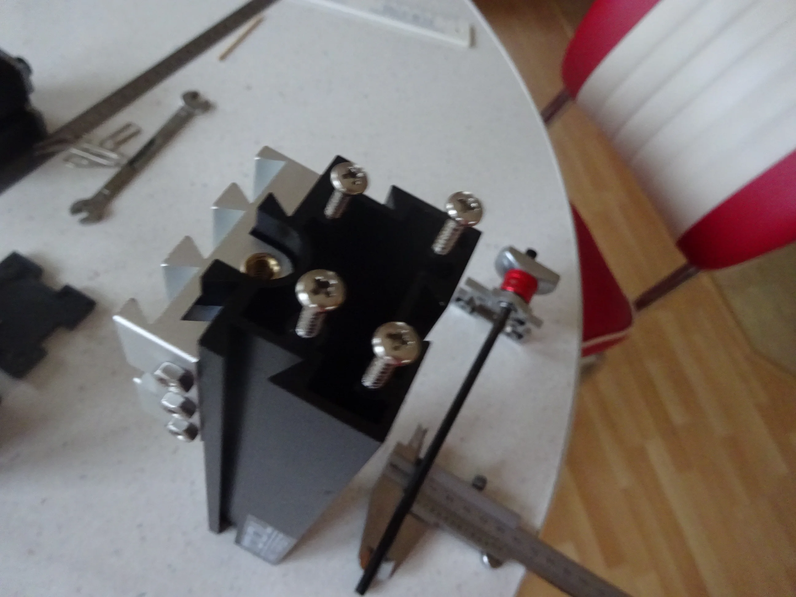 Super Teil, Gewinde-Spindel M6 Linksgewinde ( ein wenig Spiel im Gewinde-Spindellager), Gewinde von den 3 Einstellschrauben des Längsschlitten M4 ( Kunststoff-Gleitstein zur Spielaufhebung), Länge komplett 255mm ( ohne Handradkurbel 235mm ), Länge des Profils 200mm, Weg 150mm, Kreuzschlitz-Schraube d 3,5mm