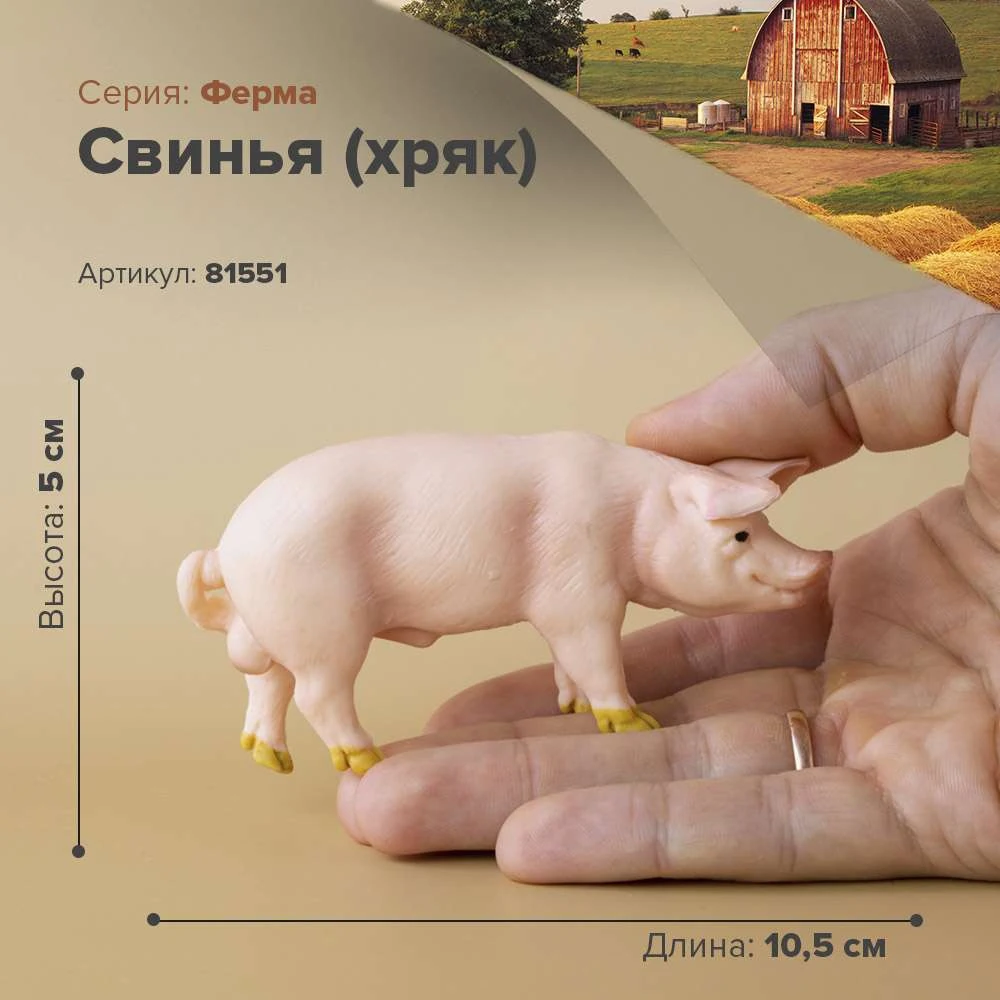 Фигурка Derri Animals «Свинья (хряк)» - это буквально уменьшенная копия животного! Такой реалистичный эффект достигается благодаря высокой детализации и ручной росписи каждой игрушки. С фигурками Derri Animals можно организовать огромное количество различных образовательных занятий, когда ребенок развивается через игру – это и погружение в фауну континентов нашей планеты, и изучение иностранных языков, и сенсорные коробочки для мелкой моторики, и сюжетно-ролевые игры, и сказки, и многое-многое другое! Фигурки животных открывают у ребенка безграничный полет фантазии! А значит – это идеальный вариант для развития мышления и воображения! Дети их просто обожают!Все игрушки изготовлены из гипоаллергенного безопасного BPA free пластика и окрашены вручную безопасными для детей и устойчивыми к влаге красками, которые максимально детально передают окрас животного. И вот вы словно держите в руках настоящего зверя! В Derri Animals представлен огромный ассортимент фигурок, где вы найдете не только диких и домашних животных, но и фигурки птиц, насекомых, обитателей морей и океанов, динозавров, драконов, единорогов и пегасов.Благодаря большому разнообразию игрушек вы сможете собрать впечатляющую коллекцию животных из разных стран, которая будет радовать долгие годы ваших ребятишек и, конечно, вас да-да, мы знаем, что в первую очередь от фигурок животных в восторге сами родители и покупают их под предлогом «ну это же для детей».