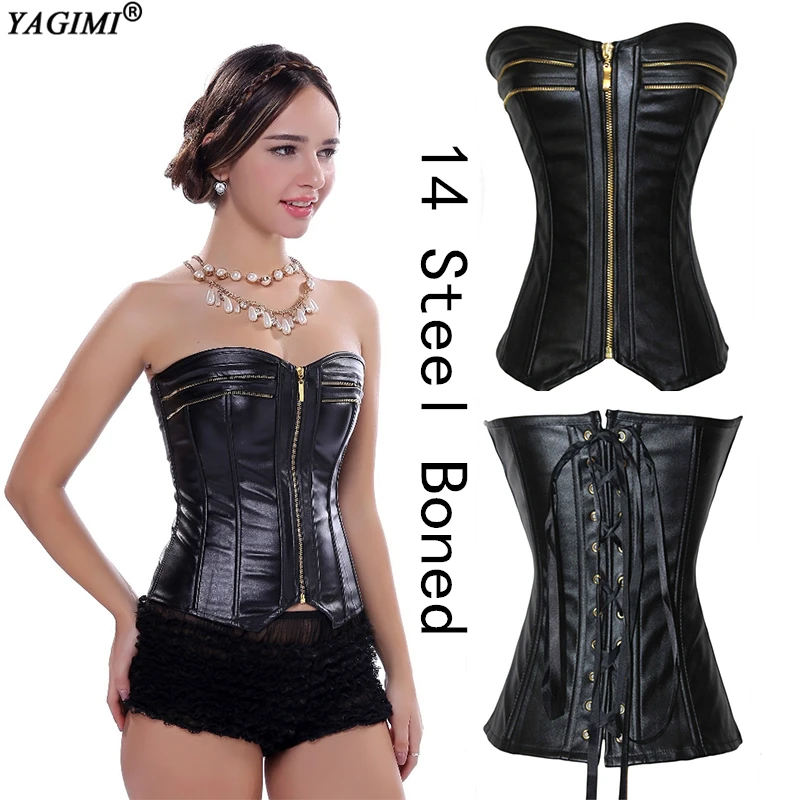 Корректирующее нижнее белье, готический корсет из искусственной кожи, бюстье на молнии, бюстье в стиле панк, пуш-ап, женское, размера плюс, для похудения
