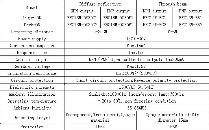 M18 ERC18M-5B1,5DL Луч преобразователя через PNP NO connector photo sensor
