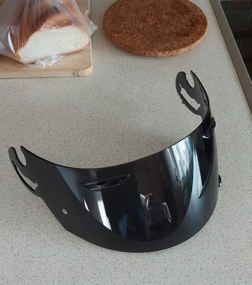 Всё супер к моему шлему Arai RX7 Corsar подошло. Защёлка на стекле тугая, на родном стекле немного легче, может позже разработается. Немного дошкурил заусенцы в месте крепления. Смотрится бомбически Я доволен. Спасибо продавцу хорошо упаковал. Рекомендую!