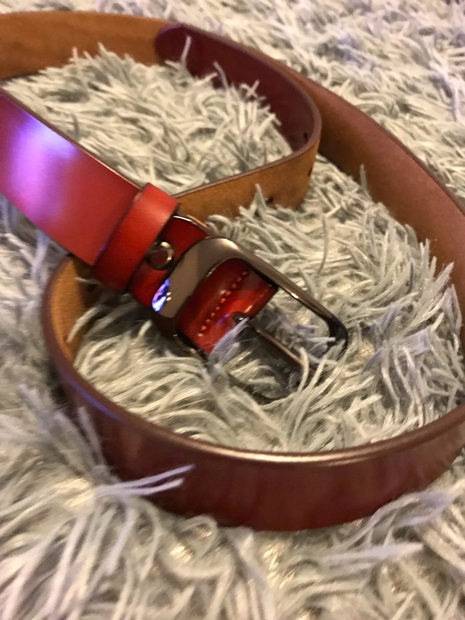 Ремень хороший, красивый ,насыщенный цвет ,( с красным оттенком) мягкий, хорошего качества. Покупкой довольны.