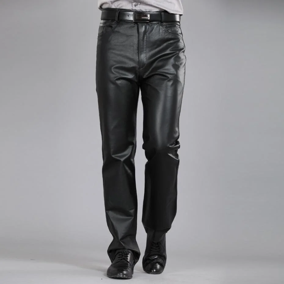 Мужские прямые брюки из натуральной кожи, размеры m-7xl