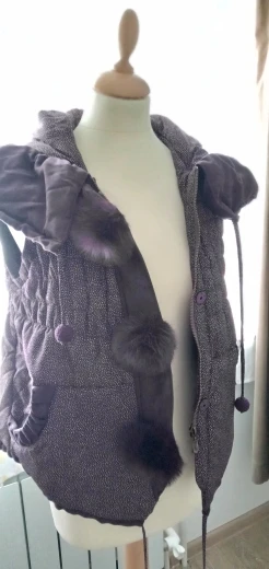 Жакет женский без рукавов, с капюшоном и помпонами, Осень-зима 2018