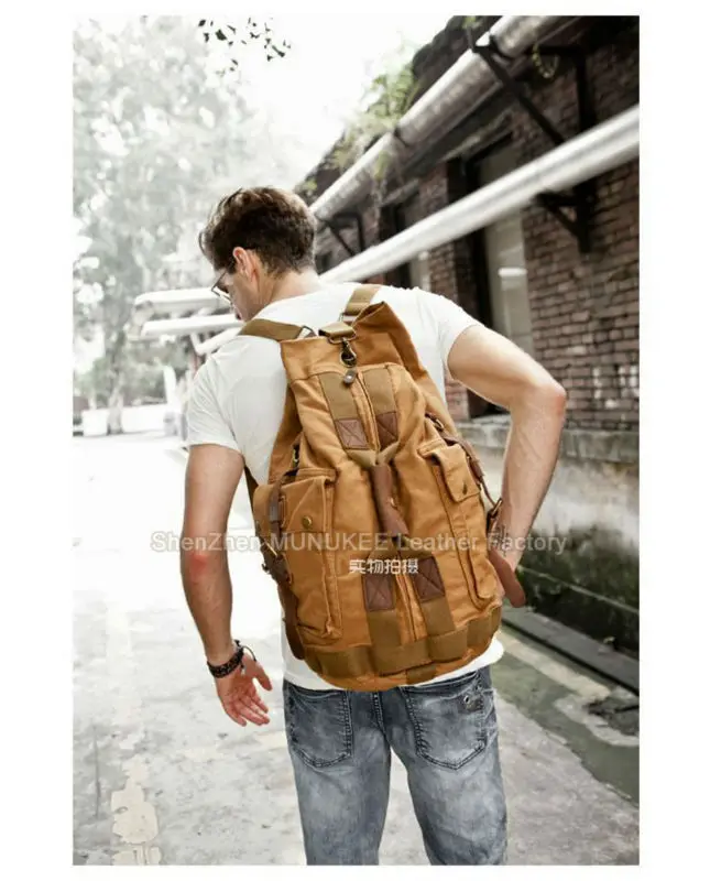 2017 модный винтажный военный хлопковый холщовый мужской рюкзак, мужская сумка-мешок, военный холщовый рюкзак, школьный мужской рюкзак, большой 55,99 долларов США/Шт.