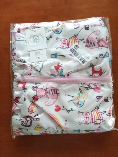 ветровка отличная, беру не первый раз) но заказывала размер 5Т 120,продавец прислал 130,но не критично, нам немного нам на вырост)
