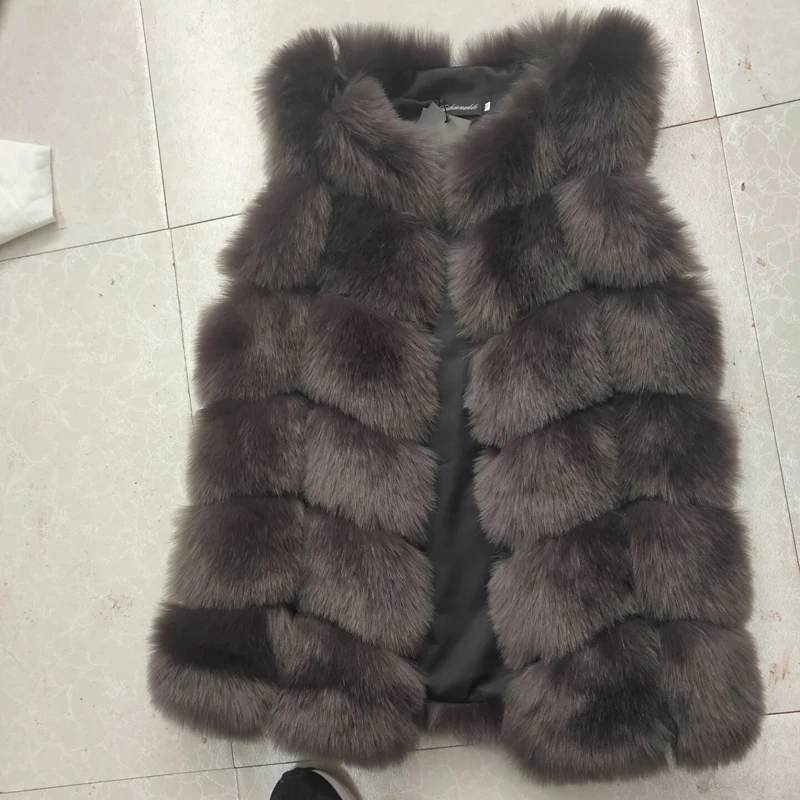 S-4XL Женщина Меховой Жилет 2017 Новый Зима Теплая Искусственного Лиса меховой Жилет Женщины Высокого Класса Мода О-Образным Вырезом Длинный Мех Пальто кардиган