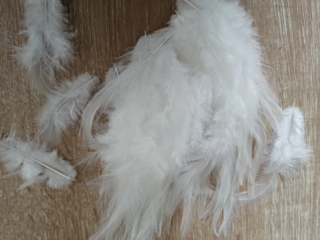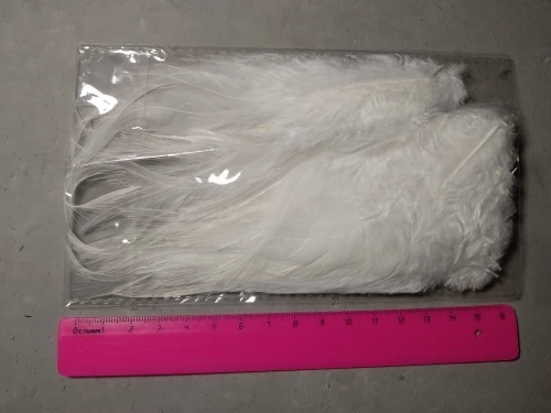 Белые перья сносно. Из-за цвета сложно передать качество товара