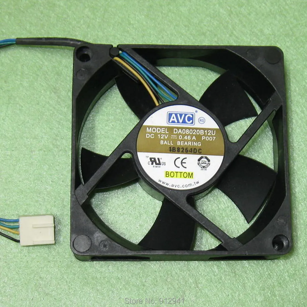 Шариковый подшипник, охлаждающий вентилятор ШИМ B68 AVC DA08020B12U 8020, 80 мм x 80 мм x 20 мм, постоянный ток 12 В, 0,46 А, 4-контактный разъем