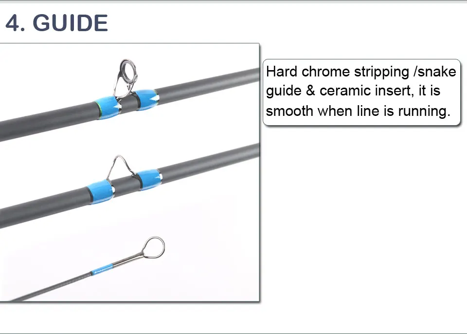 Большое расстояние и точность-Этот стержень представляет собой быстродействующий стержень, который жесткий в наконечнике и с наклоном посередине и вниз к захвату. Это очень легко достичь 80 футов или даже 100 футов на основе мастерства ролика. Стержень загружается глубоко с supreme flex и ощущается с сильным стержнем. Водит тяжелого нарушителя к точке с гладкостью. Хорошая дистанция заброса и удивительное сопротивление.