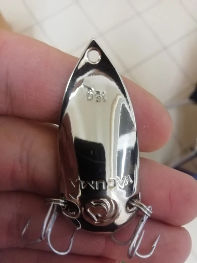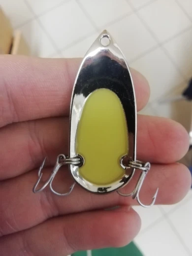 блесна хорошая, крючки тупые, вставка в блесне светится