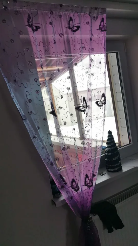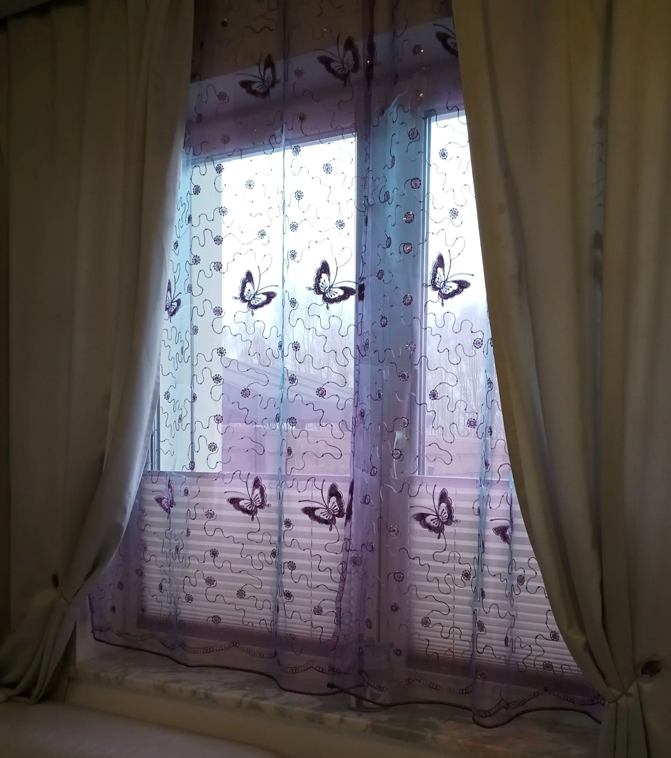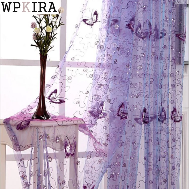 Романтические Современные вышитые блестки бабочки деревенские прозрачные фиолетовые вуаль шторы для гостиной спальни кухни 344 C