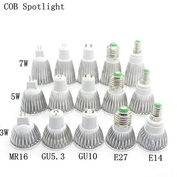 COB GU10 GU5.3 E27 E14 MR16 12V лампада СВЕТОДИОДНАЯ Лампа 220V 110V 3W 5W 7W Bombillas светодиодные лампы