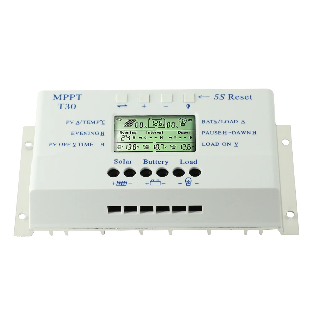 Регулятор заряда на солнечной батарее, 30 А, MPPT, ШИМ, регулируемое напряжение, ЖК-светильник и двойной таймер, 30 А, 12 В, 24 В, автоматическая работа, Новинка