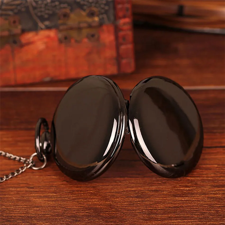 Черные двойные гладкие кварцевые карманные часы с ожерельем, класси...