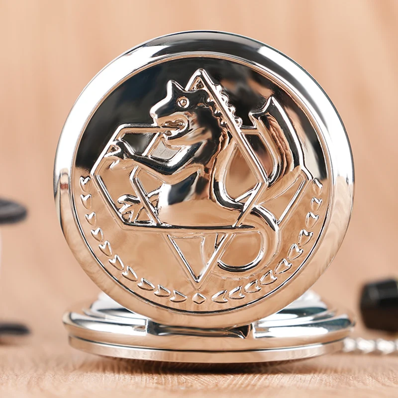 Антикварные карманные часы, стильные Мультяшные полностью металлические Алхимические кварцевые часы серебристого цвета, цепочка с подвеской, relogio de bolso