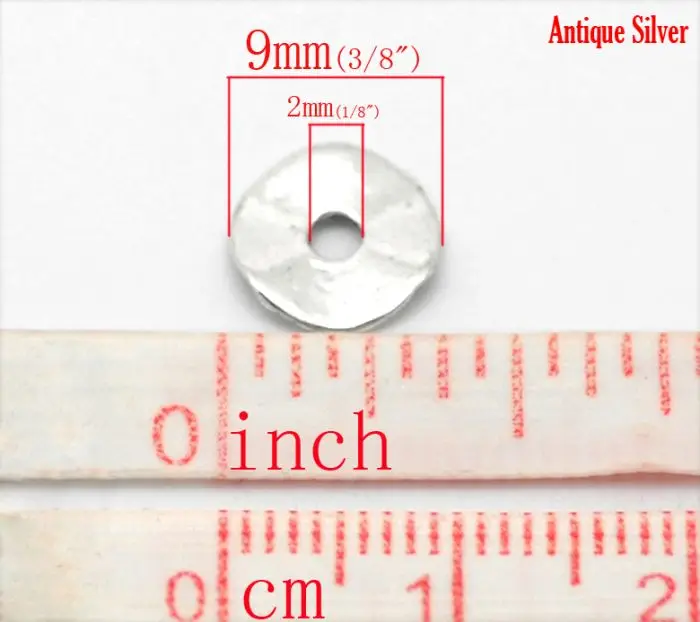 Бусины-Распорки DoreenBeads, серебристого цвета, диаметр 9 мм (200 дюйма), 38 шт.