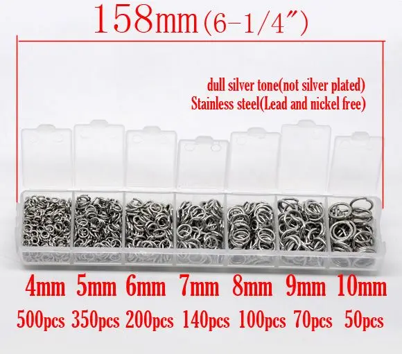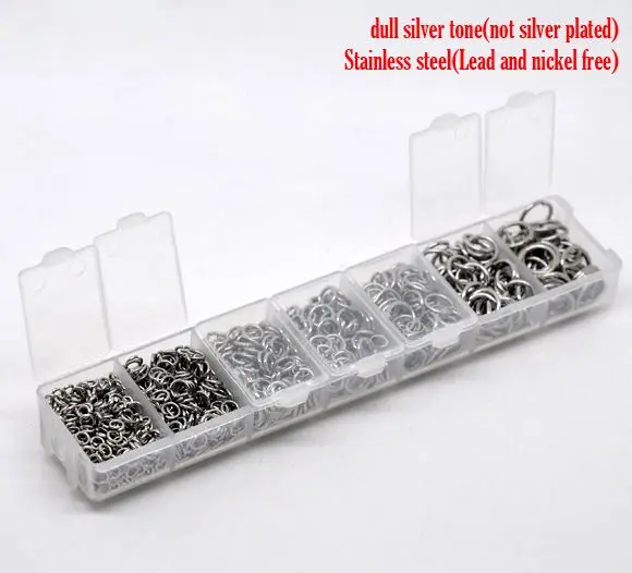 DoreenBeads 1 коробка смешанный серебряный цвет нержавеющая сталь открытый прыжок кольца 4 мм-10 мм,(1410 шт Ассорти)