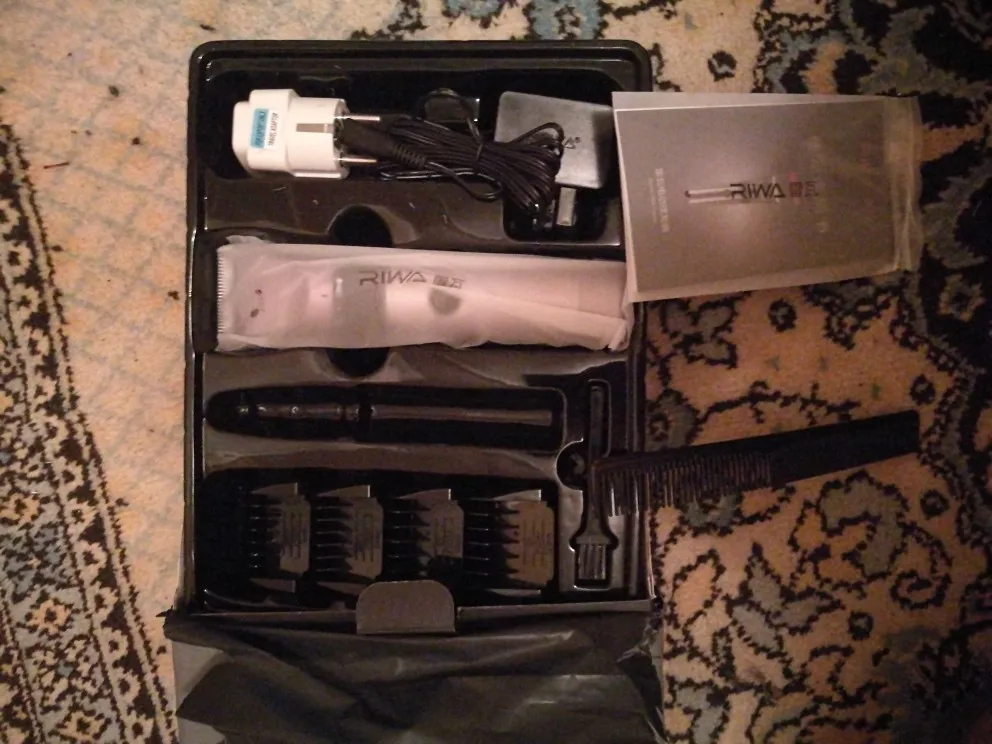В общем что хочу сказать то. Машинка качественная, фулл комплект. Единственное чего не хватает это какого нибудь кейса для хранении или пакетика. А так, в общем и целом я доволен. Стрижет охуенно. Волосы не дергает даже у детей. Шум в меру. Не раздражает. Заказывал с Российского склада. Пришла за 10 дней курьерской службой IML. Доставили до дверей.