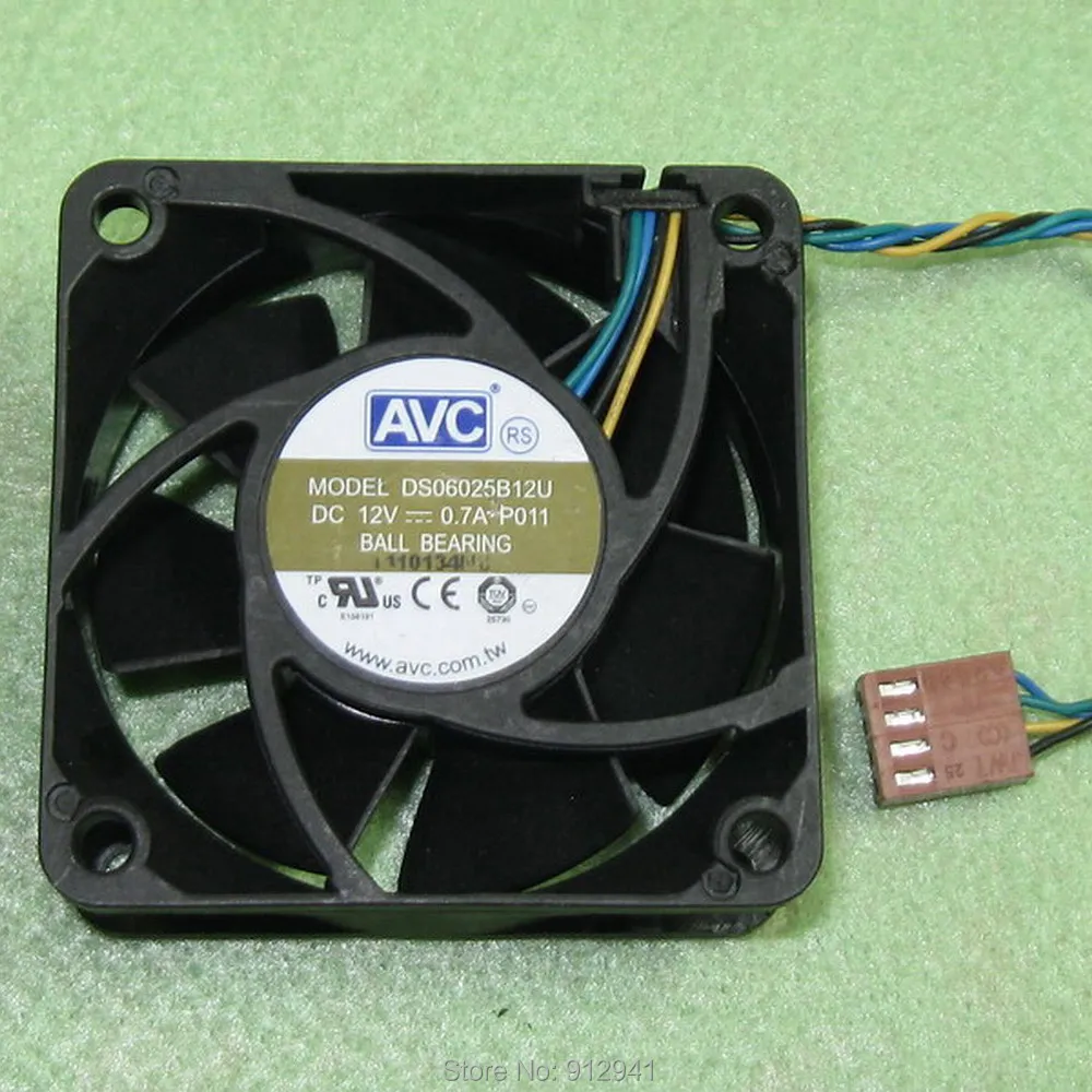 Вентилятор для охлаждения B101a AVC DS06025B12U, 6025, 60 мм x 60 мм x 25 мм, шарикоподшипник, ШИМ, 12 В постоянного тока, 0,7 А, 4 провода, 4-контактный разъем, желтая этикетка