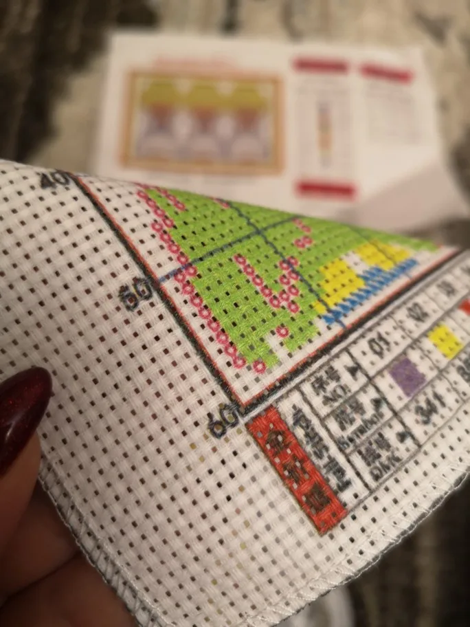 Размер полотна 25/20,а не 30/25 соответственно размер картинки совсем мал-19/14. Принт смылся без проблем:замочила на час в прохладной воде и всё само сошло. Качество мулине и канвы отличное. Ниток хватило и ещё осталось(на фото остаток нитей). Вышивала в 2 нити. 2 иглы в комплекте, вышивала 1 и с неё стерся верхний слой. Схема понятная. Заказом довольна.
