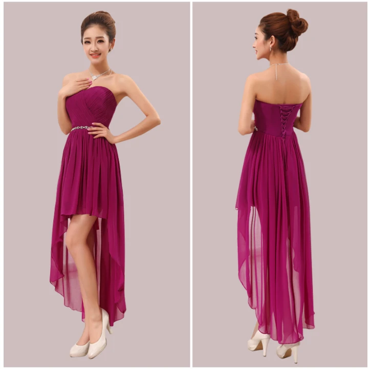 Асимметричное шифоновое платье для подружки невесты, темно-синее, милое, короткое, спереди, длинное, сзади, розовое, желтое, оранжевое, красное