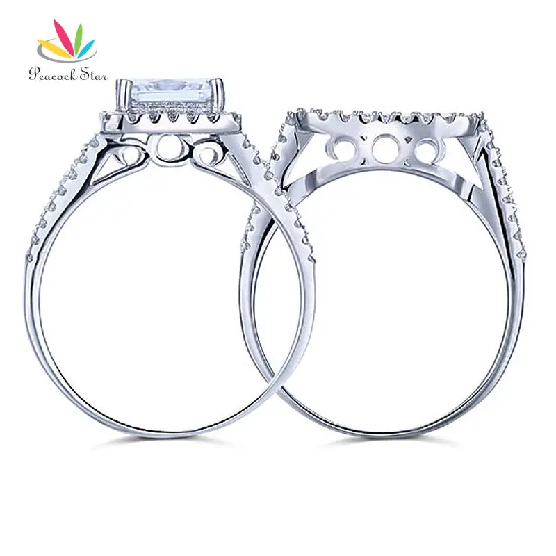 Павлин звезда 1,5 карат одноцветные колготы принцессы 925 пробы Серебряное обручальное кольцо обещание Обручение набор колец CFR8141